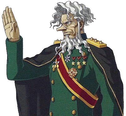Um zu beweisen, dass Alba in den KG-8-Vorfall verwickelt war, zeigte Edgeworth ihm das Video des KG-8-Vorfalls, das die Amano-Gruppe gestohlen hatte und das Alba in einem Cohdopianischen-Regierungsauto mit seiner einzigartigen Medaille zeigte. Während dies geschah, lachte Alba und ließ seine gebrechliche Fassade eines alten Mannes fallen, richtete sich zu seiner vollen Größe auf. Er wies selbstgefällig darauf hin, dass er aufgrund seiner Botschafterschaft sowie der Tatsache, dass der Mord auf albahstianischem Boden stattgefunden habe, ein Recht darauf habe, in seinem eigenen Land vor Gericht gestellt zu werden. Als Zeichen seiner rechtlichen Macht über Edgeworth gab Alba sein Selbstverteidigungsplädoyer für den Mord ab, zeigte Edgeworth seine Wunde und ging dann, um Räumungspapiere für das gesamte Ermittlungsteam zu holen.