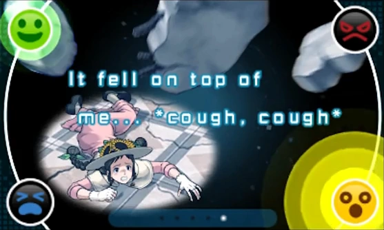Al utilizarla aparece una pantalla holográfica que muestra las emociones que esta sintiendo el testigo al dar su testimonio. Aparecen cuatro caras en los bordes de la pantalla que representan una emoción, llamados Mood Markers. Estas emociones son: felicidad, enojo, tristeza/dolor y sorpresa con los colores verde, rojo, azul y amarillo, respectivamente. La pantalla también muestra recreaciones visuales basados en el testimonio del testigo.