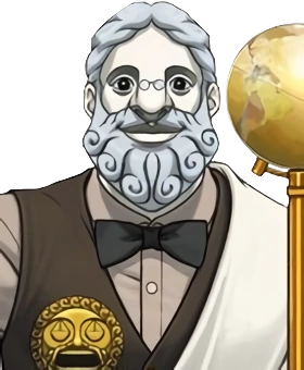 His friendly façade dropped when Cykes began to corner him in court, whereupon he became belligerent, condescending, and aggressive. He also adopted several stereotypical traits of an angry teacher, addressing the attorneys and detective as if they were his students, calling for a school nurse when attacked by Taka the hawk, and describing points of the case as being due to appear on the next test.