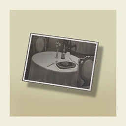 A photographic print of the crime scene was evidence in the trial of Ryunosuke Naruhodo for the murder of John Wilson. It showed a view of the entire table seating Wilson, taken by an investigator immediately after the incident. On the table was a bottle of carbonated water and exactly one steak plate and glass of carbonated water.