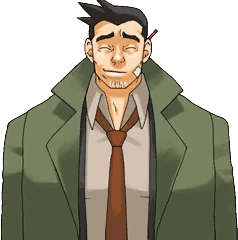 That's me! Don't step on my blue suede shoes... Wait! That's a song, pal! My name's Dick Gumshoe... W-wait! That's Detective Gumshoe to you, pal! Anyway, get the name right. And don't go calling me "Dick"...