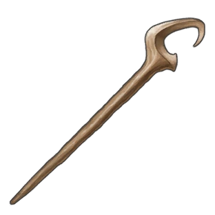 | Found half-covered in snow near Dusky Bridge the night of the crime. Has blood on it.↳Found on outcropping near Dusky Bridge. Has blood on it. Came from the victim's staff. | |