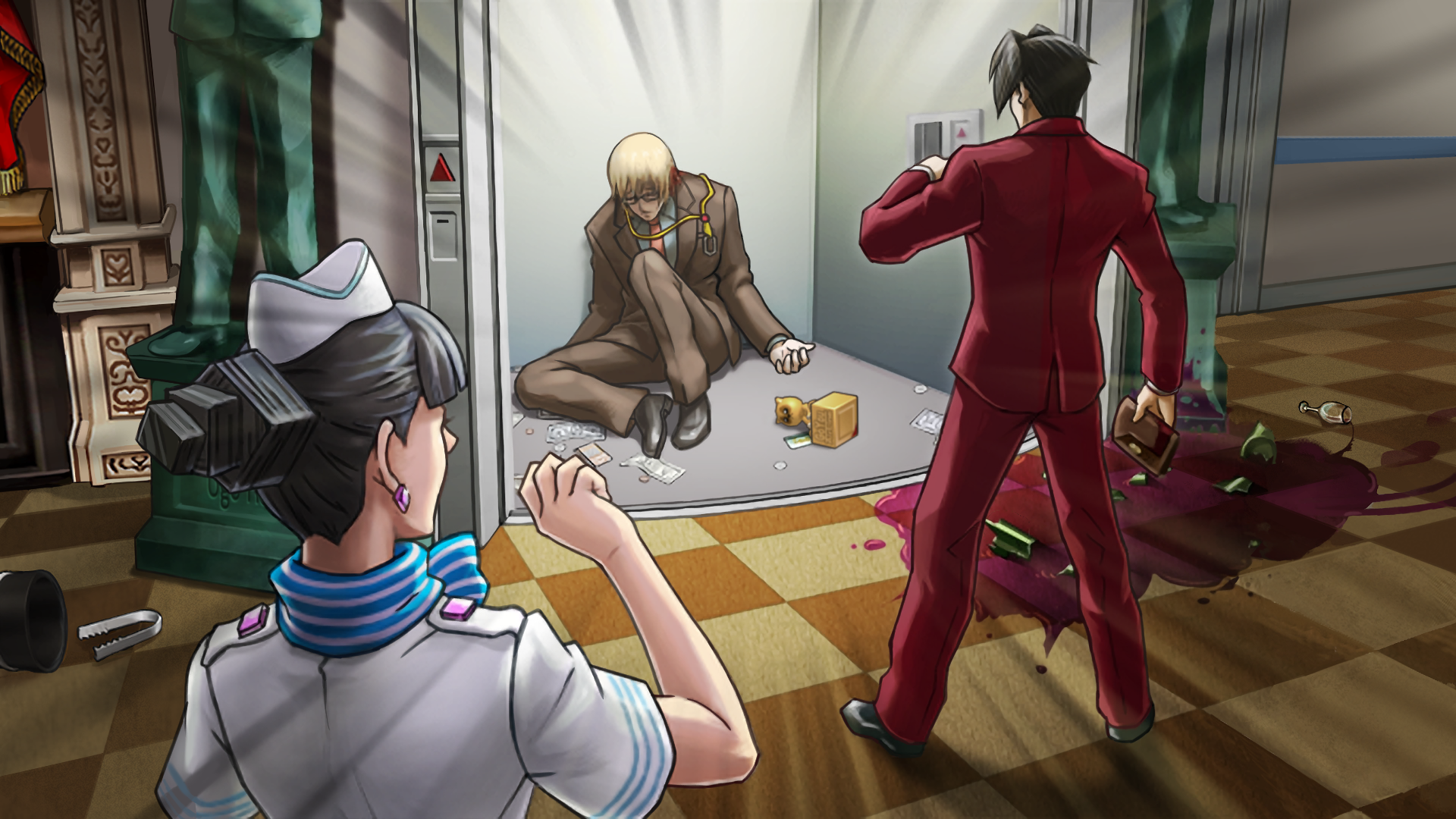 Franziska told Edgeworth that she was working with Interpol to combat an international smuggling ring, and that Hicks was an Interpol agent who had been investigating Flight G-390. As the blame shifted to Teneiro, Edgeworth eventually investigated the plane's cargo hold as the true scene of the crime. He found that the valuable Alif Red statue had been switched with a fake and eventually concluded that another flight attendant, Cammy Meele, was a member of the smuggling ring, and that Hicks's snooping had forced her to kill him in a panic.