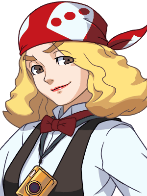 - One frame of her camera's flash bears a striking resemblance to the "shine"-like symbol seen beside the title for each Ace Attorney game to date.