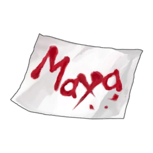A department store receipt discovered by Phoenix Wright at Fey & Co. Law Offices during his investigation of Mia Fey's murder. "Maya" is written on the back in Mia Fey's blood.